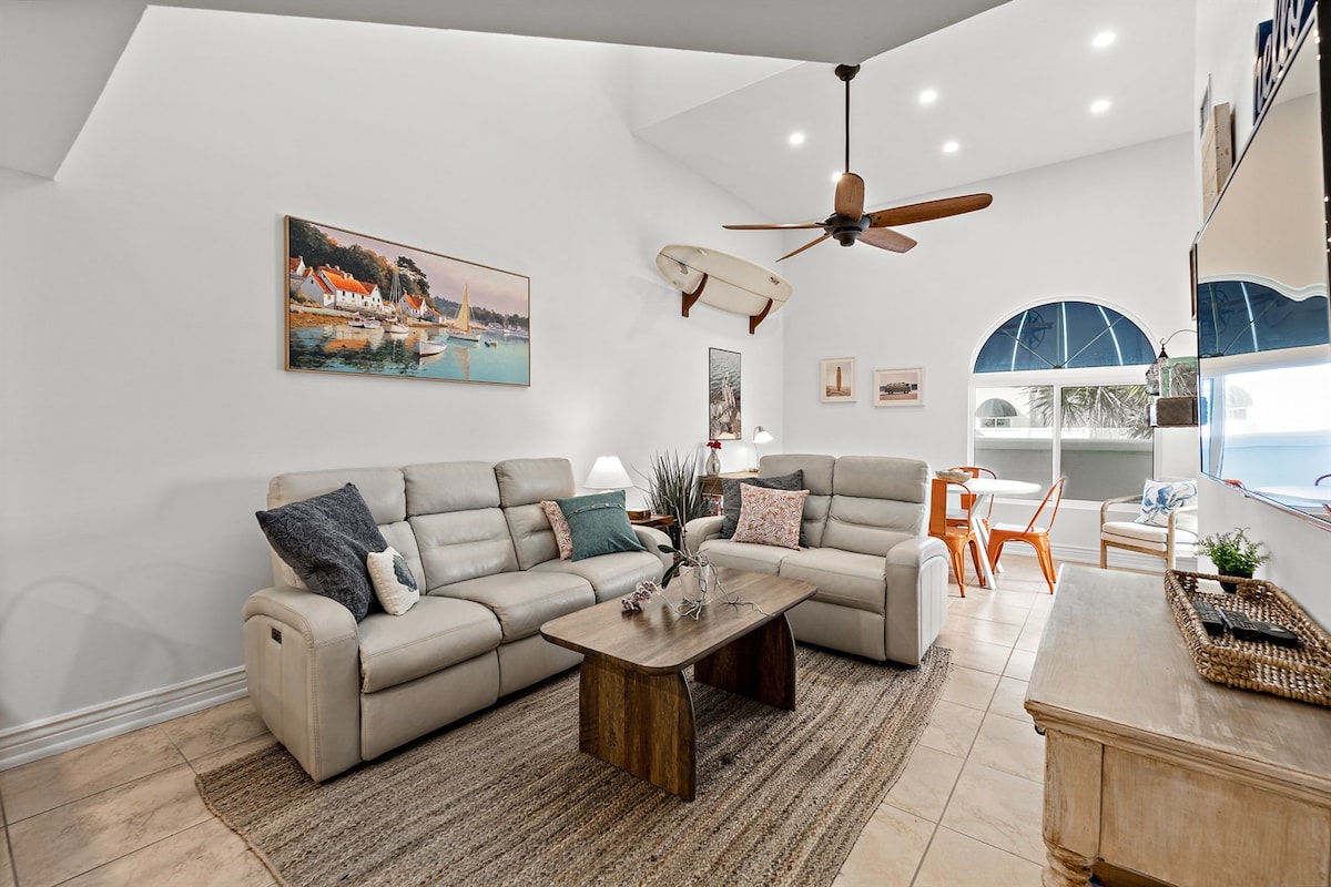 Entfliehe in dein eigenes Stück Paradies, ein brandneues Boho-Chic-Retreat nur 2 Minuten vom Strand entfernt! Stell dir das vor: Meerblick von deiner privaten Dachterrasse, Mimosen in der Hand, Atlantikbrise, die durch helle, luftige Innenräume strömt. Dies ist nicht nur eine Unterkunft, es ist dein perfekter Strandurlaub. Egal, ob du einen unvergesslichen Mädelsausflug, einen romantischen Rückzugsort am Pool oder den ultimativen Themenpark- und Strandurlaub planst, Cocoa Boho bietet die perfekte Küstenatmosphäre, nach der du dich gesehnt hast.