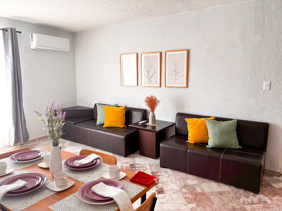 Corporate 🏡 Abteilung ideal für Arbeitsgruppen in Colima Übernachte in einer komfortablen Wohnung, die vollständig für 5 Personen ausgestattet ist, ideal für vorübergehende Aufenthalte. Erstklassige Lage vor der Universität von Colima in der Nähe von Regierungsbüros, Krankenhäusern und Einkaufszentren. Inklusive ausgestatteter Küchenzeile, High-Speed-WLAN, Klimaanlage, privatem Carport und Sicherheit. Wir stellen eine Rechnung aus. Buche und genieße eine strategische Lage!