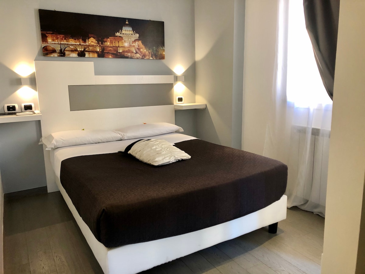 Elegantes und komfortables Zimmer für vier Personen mit Klimaanlage, Minikühlschrank und privatem Badezimmer. Das Hotel liegt 10 Minuten zu Fuß vom Vatikan und 5 Minuten zu Fuß von der U-Bahn-Station Ottaviano entfernt. Die Nachbarschaft ist sicher und gut verbunden für einen angenehmen Aufenthalt in Rom.