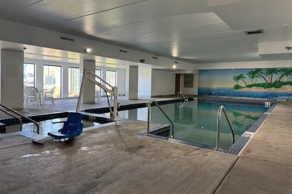 Genieße Komfort und Bequemlichkeit in unserer Suite mit zwei Schlafzimmern im Ambers Inn & Suites, nur wenige Minuten von der Innenstadt von Wisconsin Dells und den Top-Attraktionen der Gegend entfernt. Diese familienfreundliche Suite verfügt über zwei private Schlafzimmer (ein Kingsize-Bett und ein Queensize-Bett), eine voll ausgestattete Küche, einen gemütlichen Wohnbereich und eine private Terrasse im hinteren Bereich – perfekt zum Entspannen nach einem Tag voller Erkundungen. Gäste genießen saisonalen Zugang zum beheizten Außenpool, zum Whirlpool im Innenbereich, zum Picknickbereich und zum Spielplatz.