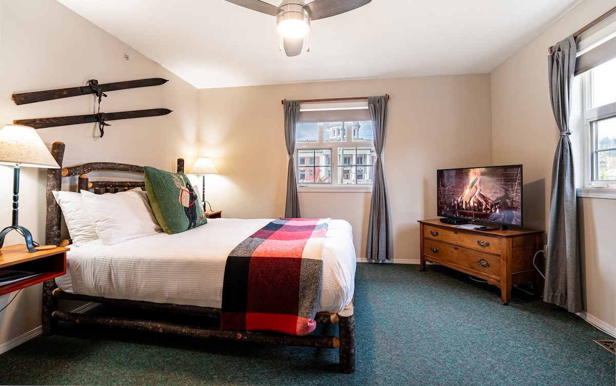 Der Code für den Selbst-Check-in an der Tür wird am Tag des Check-ins ausgegeben. Alle Gäste müssen duschen, bevor sie den Whirlpool nutzen. Einfaches kontinentales Frühstück ist in deinem Aufenthalt inbegriffen und wird bei deiner Ankunft in deinem Zimmer bereitgestellt. Genieße einfachen Zugang zu Geschäften und unserem Weltklasse-Skigebiet sowie fantastischem Downhill-Mountainbiken. Die Pipe Coaster und der Kletterturm sind ein Muss. Wir bieten viele tolle Restaurants, Outdoor-Musik fast den ganzen Sommer über auf unserer Plaza. Treträder werden in den Sommermonaten für Expeditionen in die Innenstadt zur Verfügung gestellt.