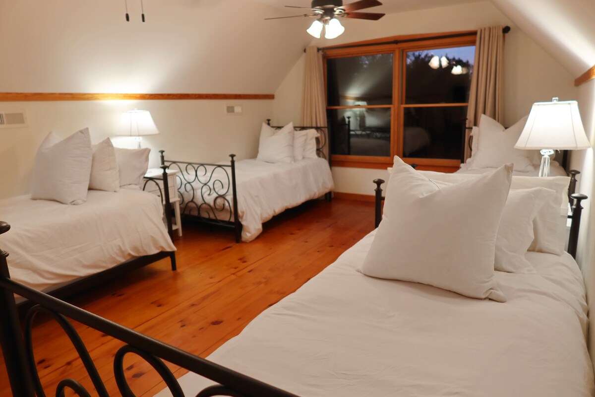Entfliehe dem Bunkhouse auf den Iron Horn Farms, einem charmanten, vom Berg inspirierten Rückzugsort auf 300 Hektar ruhigem Ackerland. Perfekt für einen Wochenendausflug. Genieße einen ruhigen Blick auf das Wasser auf unsere geräumigen Teiche, gemütliche Feuerstellen und die Gesellschaft unserer Nutztiere (auf Anfrage). Das Bunkhouse verbindet rustikalen Charme mit modernem Komfort und bietet ein einzigartiges Erlebnis, umgeben von natürlicher Schönheit. Egal, ob du hier bist, um dich zu entspannen oder zu erkunden, diese ruhige Umgebung ist dein perfektes Zuhause in der Ferne.