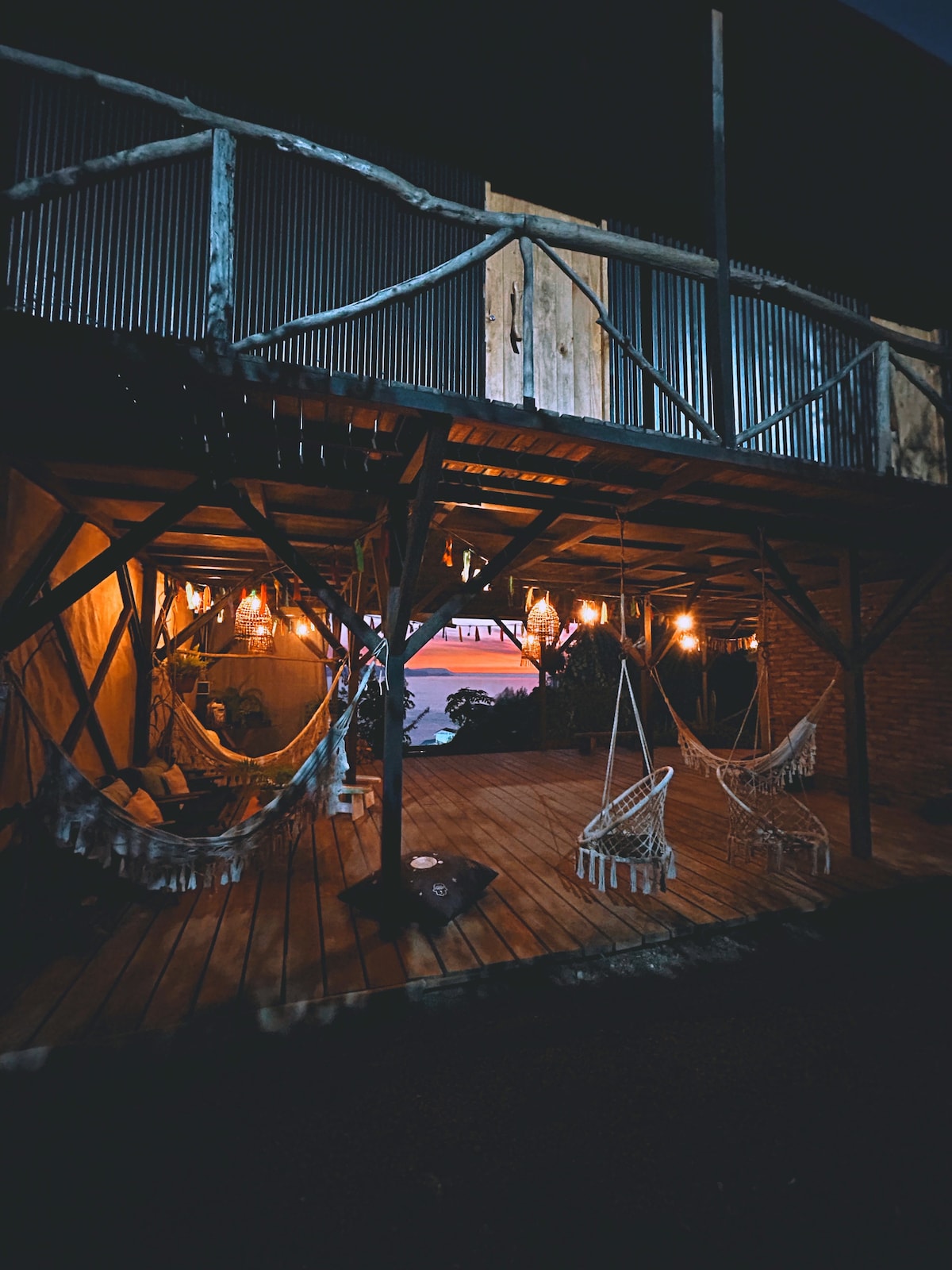 Luga Lodge de 2 hasta 5 personas, a 5 minutos de la playa camimando a una pequeña loma. Terraza privada con vista a Bahía de Concepción, Cocholgüe, e isla Quiriquina. Habitaciones en 2do nivel equipadas cómodamente con frigobar, smart, tv, hervidor, horno eléctrico, calefacción, loza, ropa de cama y terraza privada. Cocina y baño compartido en primer nivel, artículos de aseo gratuitos, secador de pelo y calefacción. Terraza con espacios de encuentro; hamacas, sillas colgantes, sillones y fogón.