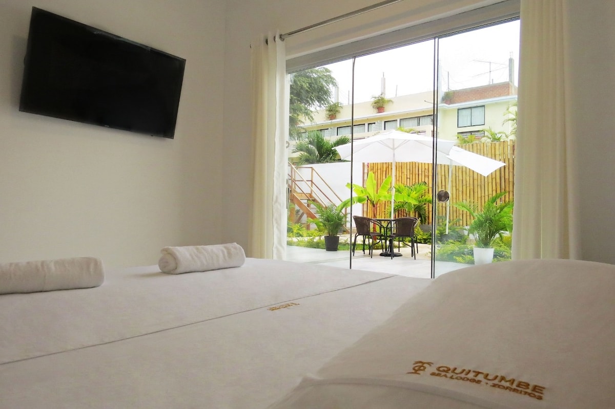 🌊 Entspannen Sie sich am Meer in einem unserer 4 Bungalows – ideal für einen perfekten Urlaub mit Familie oder Freunden. 🏡 Jedes bietet Platz für bis zu 4 Personen und verfügt über ein Doppelbett, Etagenbett, ein eigenes Badezimmer, Klimaanlage, TV, Minibar, Hängematte und Schaukelstuhl. 🌴 Gemeinschaftsbereich mit voll ausgestatteter Küche, handwerklich hergestelltem Backofen, beleuchtetem Pool, Satelliteninternet und Parkplatz. 📍 10 Minuten von Zorritos, 40 Minuten von Tumbes und 1 Stunde von Máncora entfernt. Miete die 4 Bungalows und genieße die gesamte Unterkunft nur für dich.