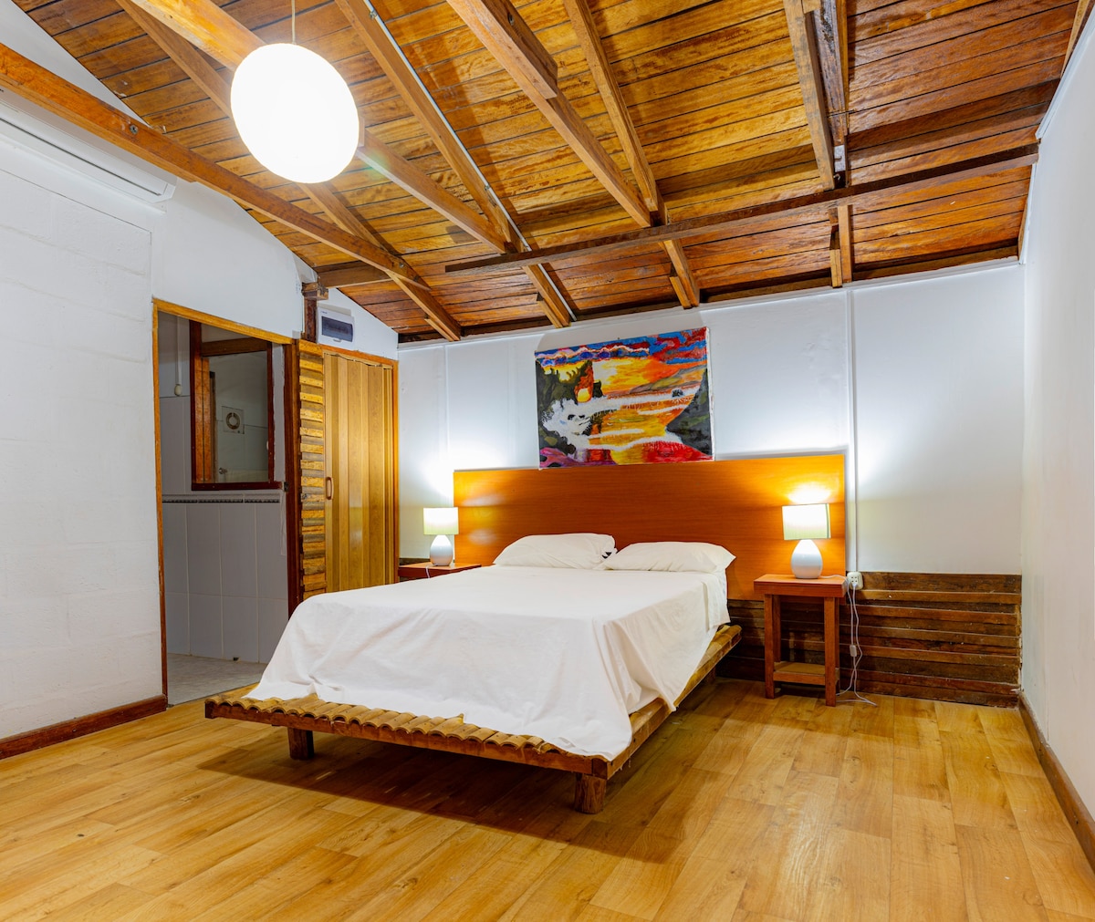 Disfruta de un refugio romántico y acogedor en nuestra habitación matrimonial con vista al mar, La amplia ventana que va del piso al techo que permite disfrutar de una vista impresionante del océano, creando un ambiente de serenidad y tranquilidad.