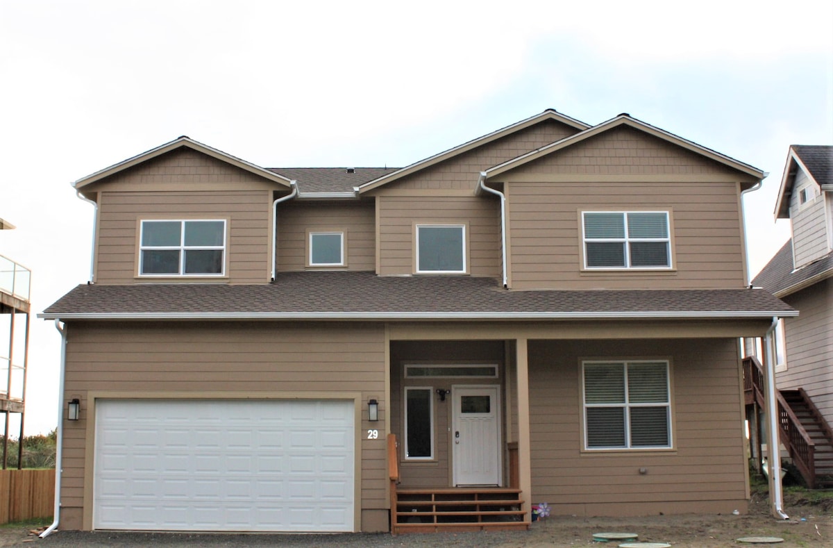 Entspanne dich im Riptide Retreat mit Blick auf den Ozean und wunderschönen Sonnenuntergängen! Gelegen auf 2 privaten Hektar zwischen Ocean Shores und Seabrook. Saisonaler Strandweg nur zum Wandern (Sommer/Herbst). Fahrräder/motorisierte Fahrzeuge sind auf dem Weg und den Dünen strengstens verboten. 2 Autominuten vom öffentlichen Strandeingang entfernt. Genieße eine voll ausgestattete Küche, einen eingezäunten Hof für Hunde, einen Propangrill, eine große Terrasse, Liegesofas, einen elektrischen Kamin, Smart-TVs, Keurig, 2 Pack 'n Plays, eine Waschküche, Strandspielzeug und vieles mehr. Garage für zwei kleine Autos.