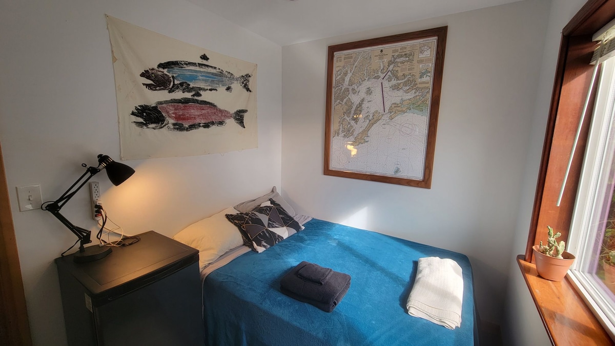Besuche Cordova und übernachte in dieser niedlichen 1 br 1 ba Wohnung mit wunderschönem Blick auf Orca Inlet, Spike Island und Cordovas brandneuer Arbeitshafen. Ausreichend Parkplätze. Die Eigentümer befinden sich im Obergeschoss im angeschlossenen Haus, aber die Wohnung gehört ganz dir mit einem separaten Eingang. Das Schlafzimmer verfügt über zwei komfortable Einzelbetten. Klappbett im Schlafzimmerschrank verfügbar. Die Futon-Couch im Wohnzimmer kann für zusätzlichen Schlafplatz geöffnet werden. Großer Kühlschrank, Herd/Backofen und stapelbare Waschmaschine/Trockner in der Einheit.