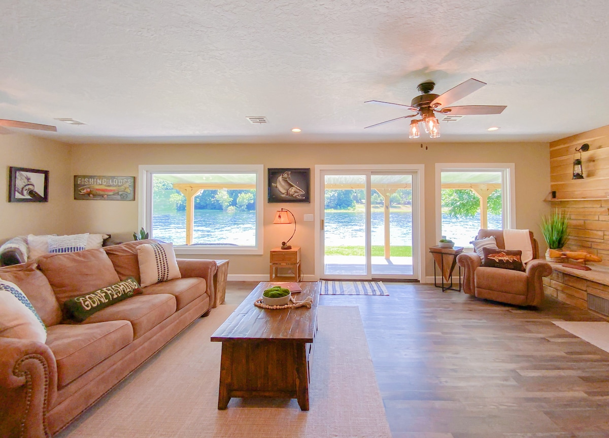 Erlebe nichts Vergleichbares auf dem White River, einem erstklassigen Forellen- und Fliegenfischziel! Dieses brandneue, einstöckige Haus mit drei Schlafzimmern und drei Badezimmern direkt am Wasser befindet sich an der Bootsrampe Wildcat Shoals und sorgt für Entspannung, Erfrischung und Inspiration! Der weitläufige Küchen-Ess-Wohnbereich – wunderschön erdfarben und ultra-ausgestattet – bietet unzählige Zusammenkunftsszenarien ... besonders, wenn er auf den Außenbereich mit seiner Feuerstelle, seinem Fernseher, seinem Essbereich im Freien und seiner spektakulären Aussicht erweitert wird.
