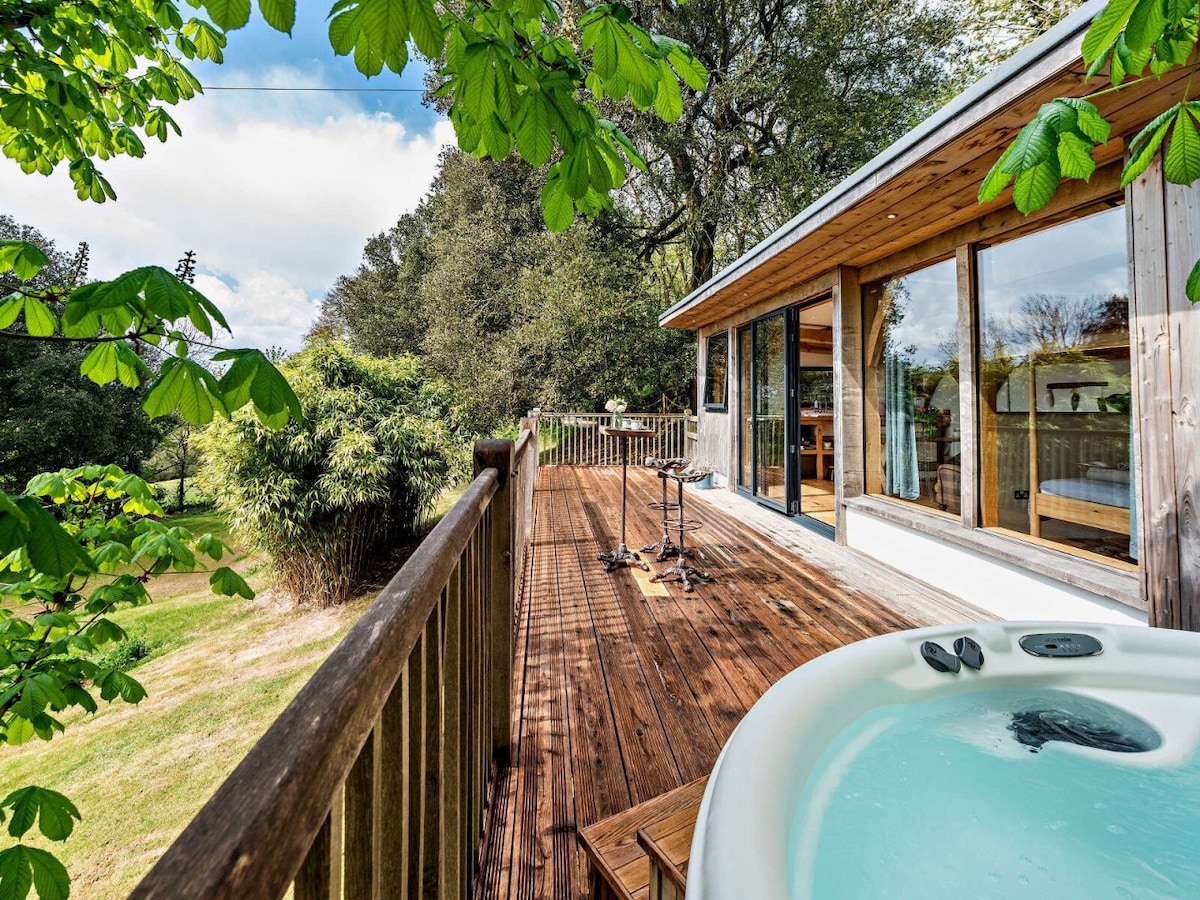Luxuriöse Blockhütte mit Whirlpool und Blick auf Dartmoor