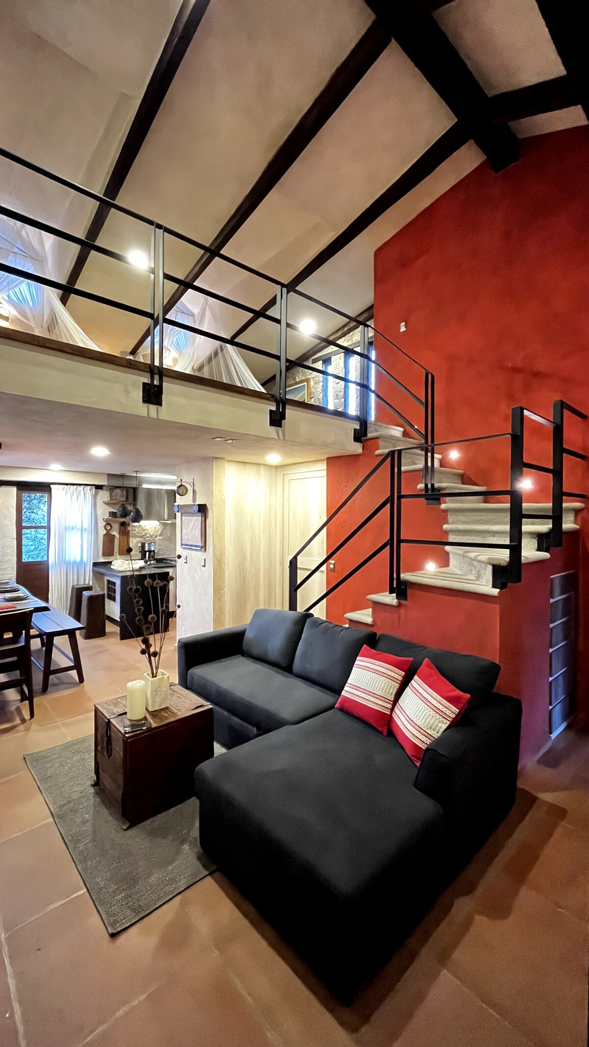 Welcome to Casa Martina, a stylish loft apartment within a renovated & architecturally renowned Casona in Puebla’s unique Historic Center. This 3-level space offers everything you need for a memorable stay: A king bed with 60’ TV + streaming, automatic blinds, AC, desk, fully equipped kitchen with Nespresso, laundry room, and a full bathroom with double sinks. Enjoy a private rooftop terrace with 360° views of the city and volcanoes. Gated building with free parking for a sedan/SUV car included.