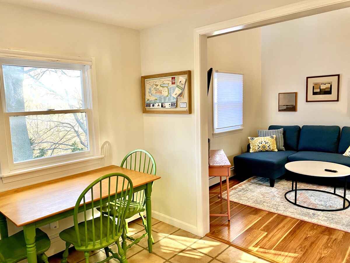 This beautiful and cozy apartment was renovated by our own hands, with energy efficiency and craft in mind. The space is an opened kitchen/living room with 2 bedrooms. Reclaimed beams and old wood mix with fun colors and gorgeous full sunlight. A lush organic garden surrounds the house with backyard chickens. Set on a quiet street, walking distance to Willard Beach & Scratch bakery, 5 minutes to Portland Headlight and 10 minutes to Portland's Old Port.