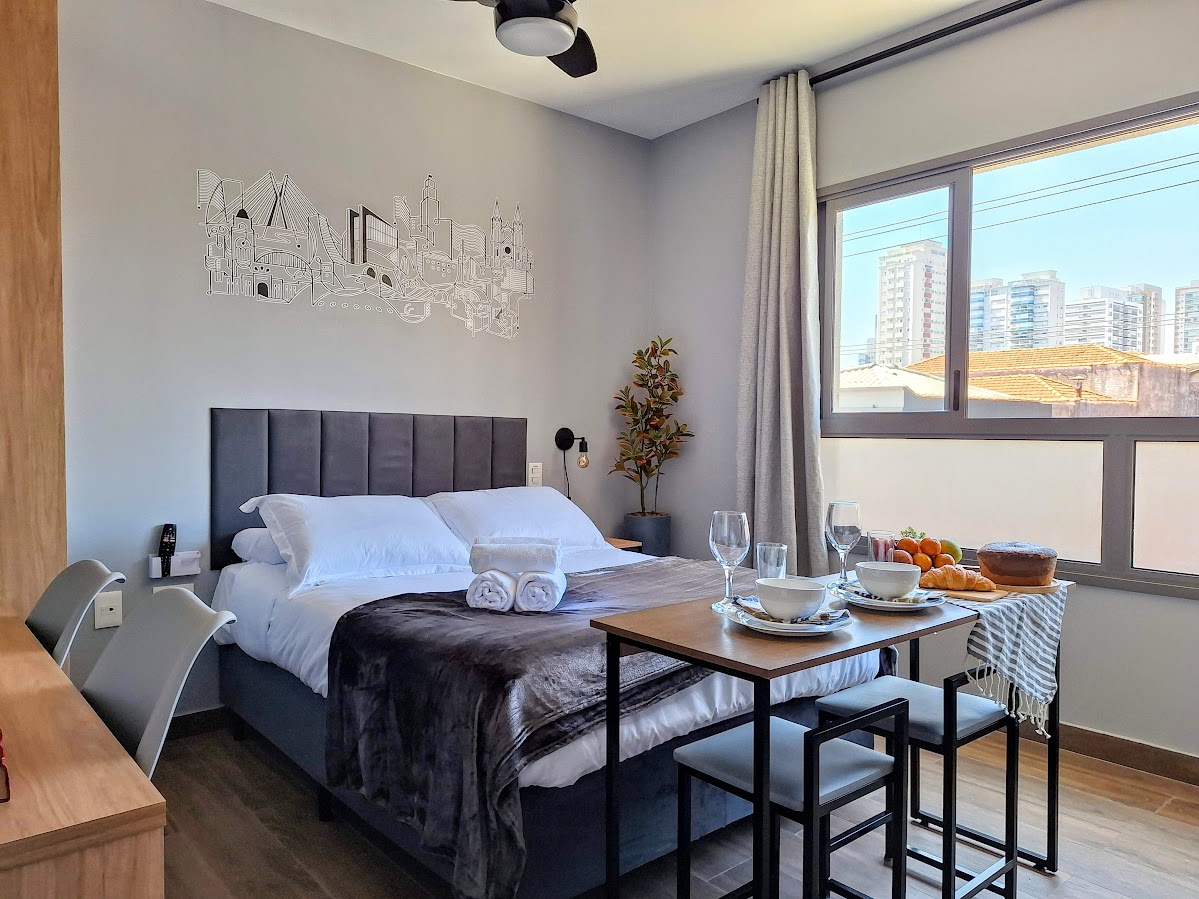 Lass dich von diesem raffinierten Studio im Herzen von Klabin, neben Vila Mariana, verzaubern! Unglaubliche Stadt- und Sonnenuntergangsaussicht, modernes Design, elegante Einrichtung und hochwertige Oberflächen, der Raum wurde für Ihren maximalen Komfort entworfen. Doppelbett mit Bettwäsche, Klimaanlage, Verdunkelung, schnelles WLAN und voll ausgestattete Küche. Das Hotel liegt in einer der nobelsten Regionen von SP, mit U-Bahn 5 Minuten zu Fuß, Cafés, Märkte und Restaurants ein paar Schritte entfernt. Ein perfekter urbaner Rückzugsort für deinen Aufenthalt!