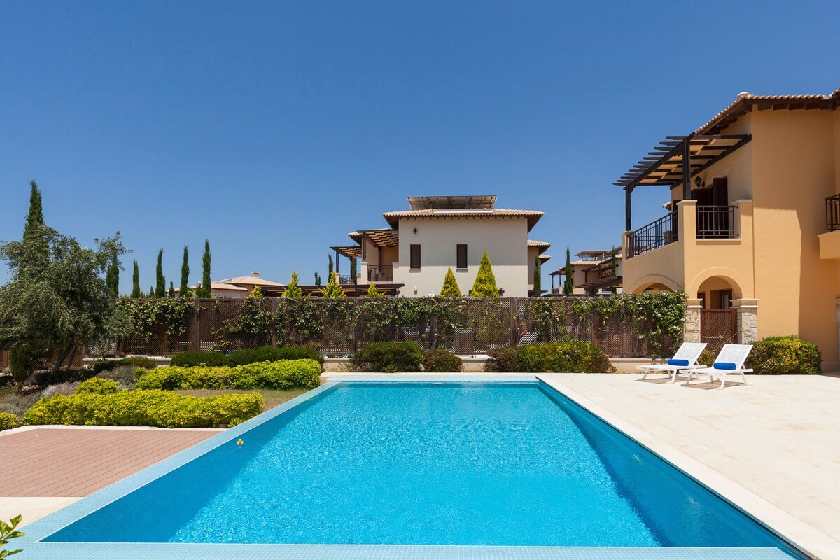 Diese Villa ist Teil des renommierten Aphrodite Hills Resort, eines Fünf-Sterne-Ziels in der Nähe von Paphos, das erstklassige Freizeit-, Sport- und Entspannungsmöglichkeiten bietet. Das Resort liegt inmitten einer üppigen Gartenanlage mit Blick auf das Mittelmeer und verfügt über den preisgekrönten PGA National Cyprus Golf Course, eine außergewöhnliche Tennisakademie mit Hart- und Sandplätzen und ein luxuriöses Spa mit Fitnessraum, Friseursalon und gesundheitsorientierten Restaurants.