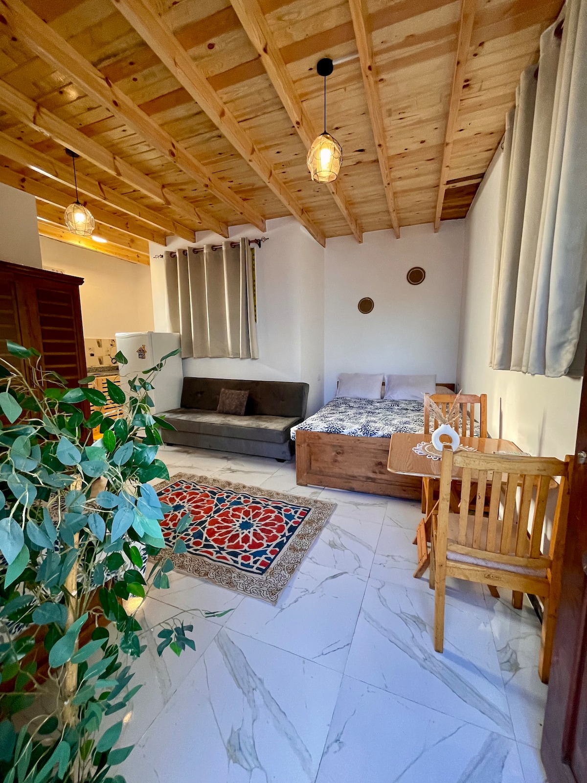 Wenn du auf der Suche nach einem System der Sauberkeit, Ordnung, Schönheit und Ruhe sowie der Nähe zum Zentrum des Lebens, des Meeres, der Restaurants, einer Bank und eines Gehwegs bist, ist es eine Bestätigung im Geist eines Studios. Das einzige Gelände in Dahab, das all diese Merkmale und mehr hat, das nur durch den Aufenthalt darin gelehrt wird. Dieses Studio verbindet urbanes Leben mit all seinem Luxus und bewahrt gleichzeitig den einzigartigen Geist von Dahab. Man wird sich in eine Lebensform verlieben, die mit Glück in jedem Detail gemischt ist.