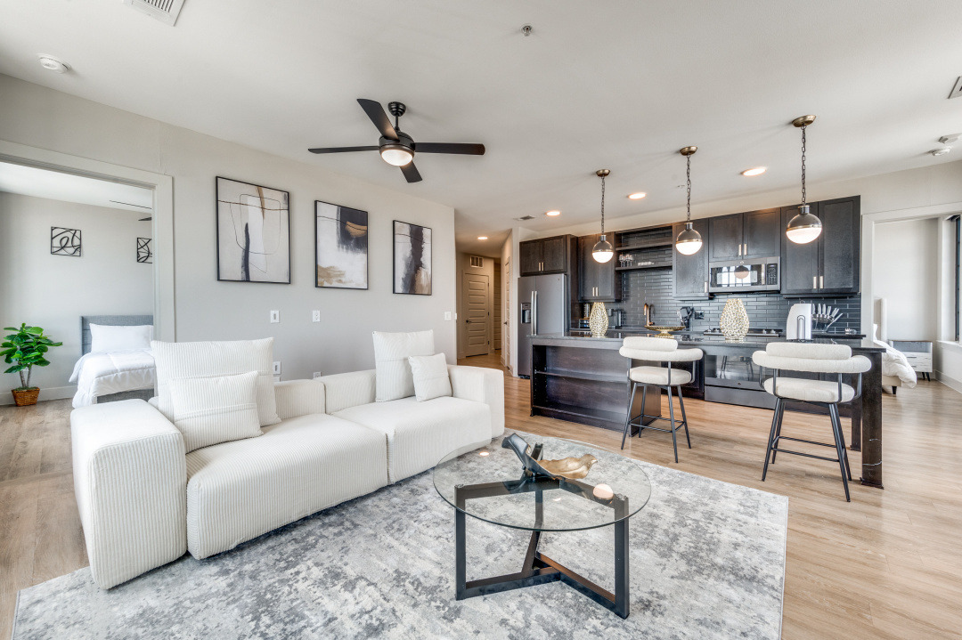 Begrüße dein schickes Apartment mit einem Schlafzimmer – dein zweites Zuhause. In deiner Einheit mit einem Samsung Smart TV, Sonos, notwendigen Kochutensilien und herrlich bequemer Bettwäsche fühlst du dich sofort wie zuhause. Diese Einheit ist mit allem ausgestattet, was du brauchst, um in deine Einheit einzuziehen und dich sofort wie zuhause zu fühlen. Wir haben bequeme Bettwäsche in Hotelqualität, stilvolle Möbel und riesige Fenster, die den ganzen Sonnenschein hereinlassen, den du dir wünschen kannst.