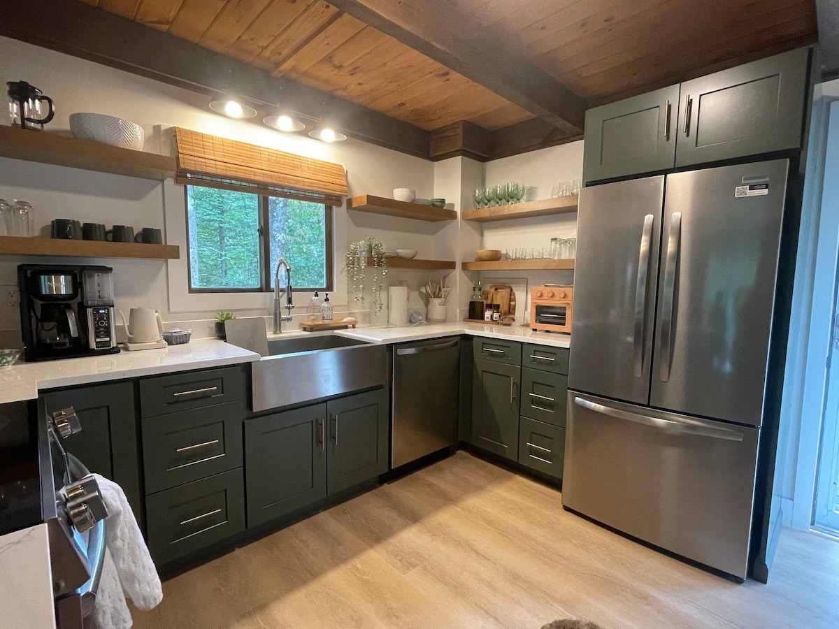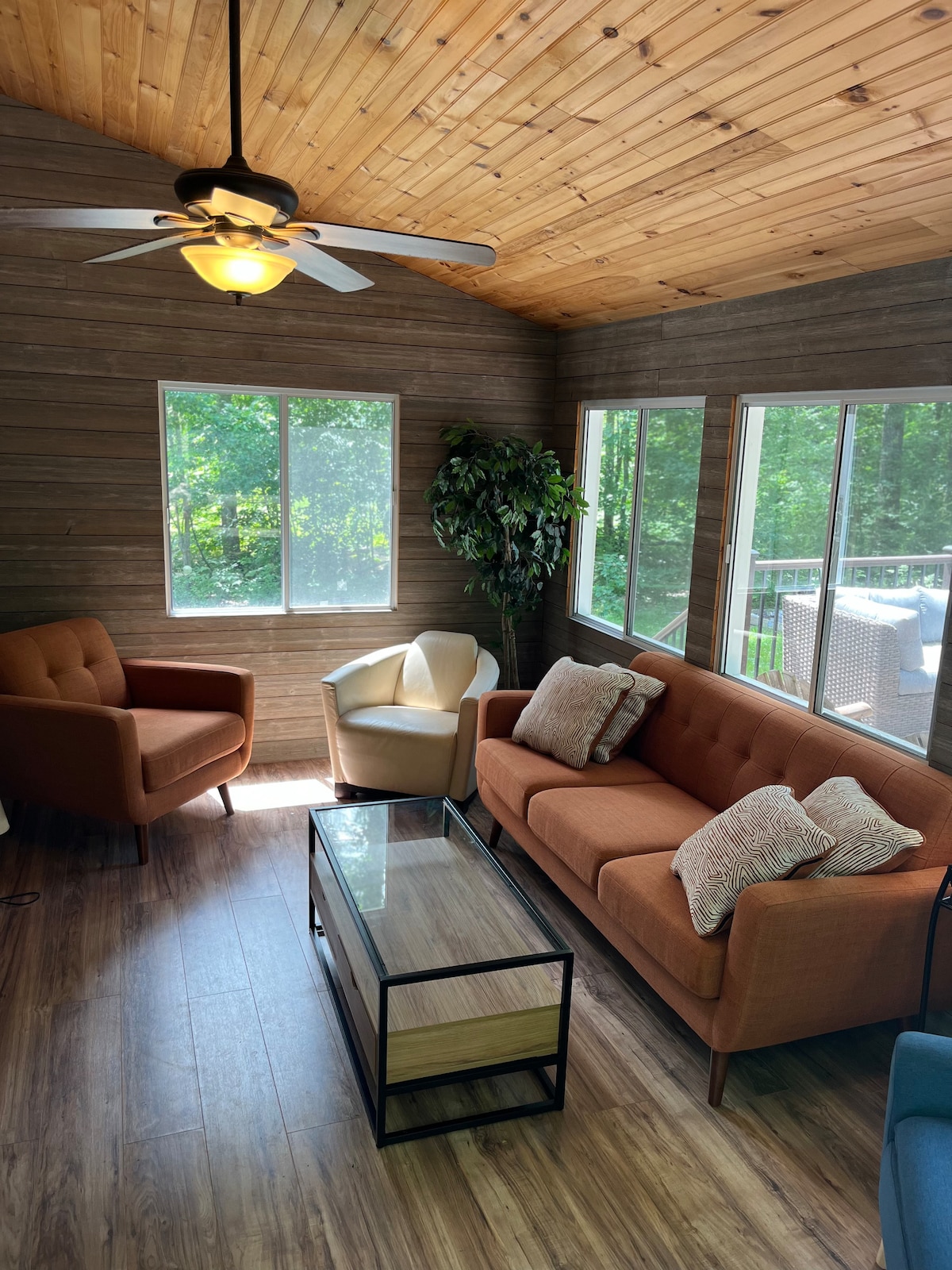 Willkommen in dieser sauberen, hellen, luftigen Hütte mit raumhohen Fenstern und einem atemberaubenden Blick auf den Sargent's Pond zu jeder Jahreszeit. Mit 62 Hektar und mit nur zwölf Häusern ist Sargent's Pond der perfekte Ort für einfachere Aktivitäten und Ruhe. Genieße zwei komfortable Doppelschlafzimmer, ein ausziehbares Sofa im Wohnzimmer, ein Badezimmer mit Wanne, Waschmaschine und Trockner, eine voll ausgestattete Küche mit Geschirrspüler, Bluetooth-Stereoanlage (bring deine Vinyl mit!) und Smart-TV. Genieße das Essen und Entspannen auf der geräumigen Terrasse mit herrlichem Blick auf das Wasser und für die Kleinen, das Schwingen und Schieben auf dem Schaukelset. Oberhalb der Garage befindet sich ein Freizeitraum mit einer Tischtennisplatte sowie einem zerschmetternden Kinderspielzimmer mit Spielzeug, Brettspielen, Rätseln und Büchern. Genieße den TV/ DVD-Player mit einer Vielzahl von Lieblings-Kinderflicks. Perfekt für Regentage oder Auszeit, dieser zusätzliche Wohnraum wird Kinder und Erwachsene gleichermaßen gefallen! Bitte beachte, dass auf Anfrage eine Pack-and-Play-, Kindermatratze und Kinderhochstuhl verfügbar sind.