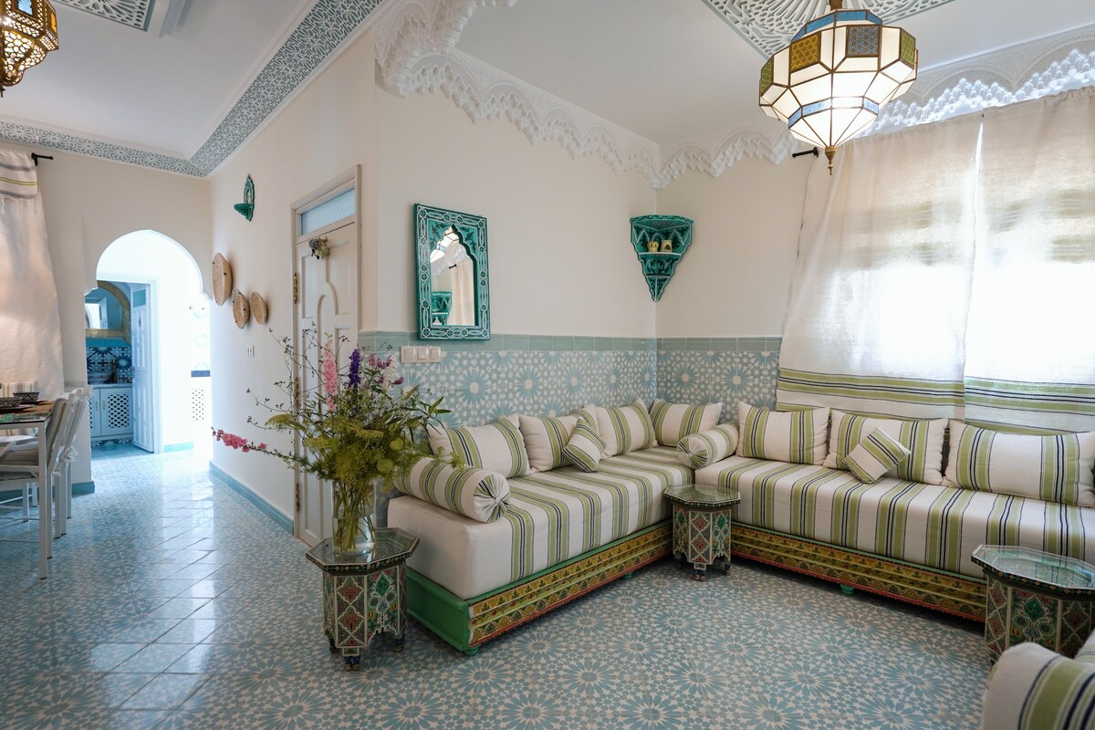 Im Herzen der Medina von Asilah gelegen, öffnet sich Dar el Maq zum Atlantik mit atemberaubenden Sonnenuntergängen. Dieses moderne Riad ist elegant eingerichtet und verbindet marokkanischen Charme mit modernem Komfort. Genieße deine private Sauna zum Rauschen der Wellen – eine wahre Oase der Entspannung. Jedes Detail wurde für dein Wohlbefinden gestaltet: feine Bettwäsche, weiche Handtücher, hochwertige Pflegeprodukte und durchdachte Annehmlichkeiten, damit du dich vom ersten Moment an wie zuhause fühlst.