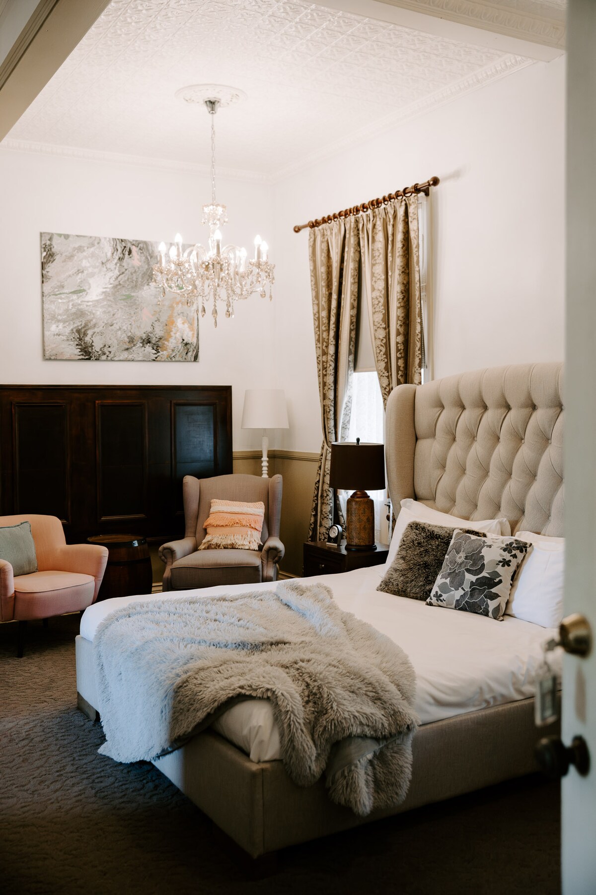 Dieses luxuriöse Zimmer ist voller Romantik und diesem alten Charme der Welt und voller Charakter und Details, die dich in die guten alten Zeiten zurückversetzen - aber mit den modernen Annehmlichkeiten von Klimaanlage, elektrischem Kamin und einer Kaffeepad-Maschine.