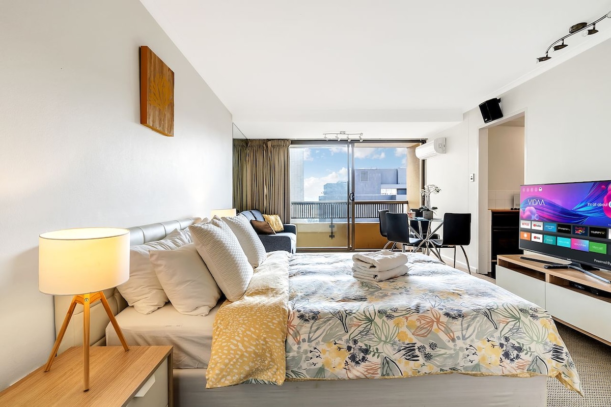 Entspannen Sie sich in unserer stilvollen CBD-Oase - einer neu renovierten modernen Studiowohnung im Herzen von Sydney. Dieses sonnige Refugium in der Innenstadt verfügt über luxuriöse Annehmlichkeiten wie ein Queensize-Bett mit hochwertiger Bettwäsche, ein schickes Badezimmer mit kostenlosen Pflegeprodukten, eine Waschmaschine, eine voll ausgestattete Küche, eine Nespresso-Maschine, Tee, kostenfreies WLAN und Netflix. Genieße einen herrlichen Blick auf die Oxford Street, während du nur wenige Gehminuten vom Opernhaus, der Kunstgalerie, dem Sydney Tower und den Royal Botanic Gardens entfernt bist. Perfekt für deinen Aufenthalt in Sydney!