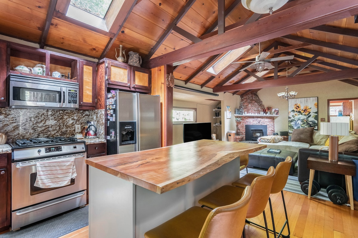 Der perfekte Aufenthalt für Abenteuerlustige und Entspannungsenthusiasten. (Genehmigung 251052) Entspanne dich bei Gartenspielen und Grillen, tanke Sonne auf der Terrasse oder entspanne in einer Hängematte im Schatten der Mammutbäume. Mach es dir am Kamin gemütlich, genieße den Waldblick durch Oberlichter oder schau Filme auf der großen Leinwand. Erkunde Wanderwege nur wenige Schritte entfernt, riesige Mountainbike-Strecken (10 Min.) oder gehe an den Strand und surfe (13 Min.). Gönne dir eine Weinprobe in einem lokalen Bergweinberg, der zwischen den Mammutbäumen liegt (5 Minuten).