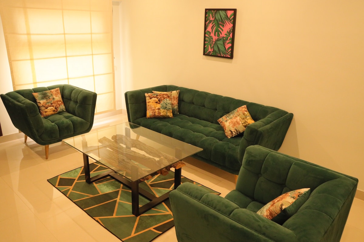 Eine gemütliche, voll möblierte Wohnung, die mit allem Notwendigen ausgestattet ist, damit du dich wie zuhause fühlst. Genieße frische Luxus-Bettdecken, weiche Kissen und moderne Annehmlichkeiten für einen entspannten Aufenthalt. Zentral in Karachis nobelster und familienfreundlichster Gegend gelegen, nur 4 Minuten vom Strand entfernt. Umgeben von einer Vielzahl von Restaurants, Cafés, Einkaufszentren und Salons. Sicheres Gebäude und sichere Nachbarschaft, ideal für Familien und längere Aufenthalte.