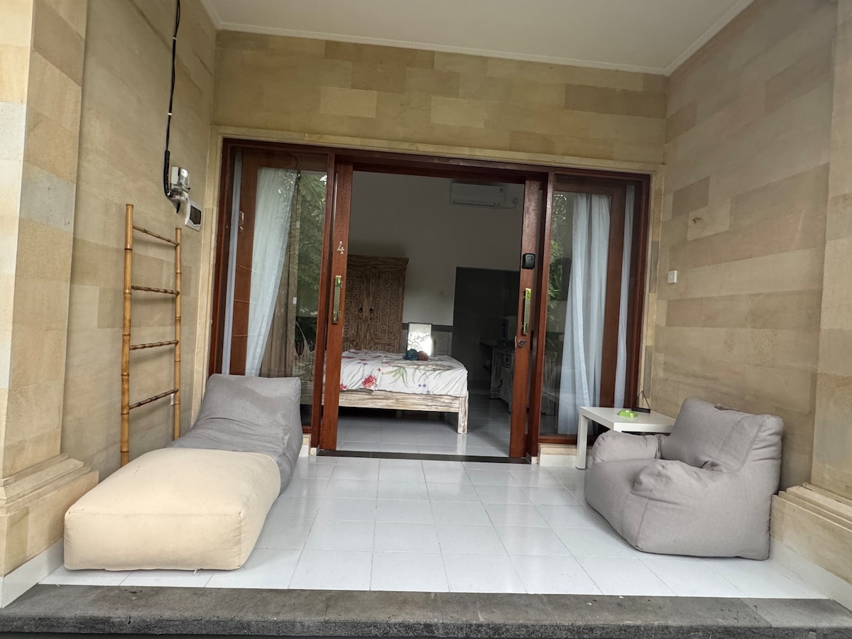 Das Bale Daja ist eine eigenständige Einheit des Canang Sari Homestay, die in einem balinesischen Haus mit wunderschön gestaltetem traditionellem Design untergebracht ist. Die Unterkunft verfügt über ein eigenes Bad, eine Küche und eine Toilette. Die Veranda bietet einen Blick auf üppige tropische balinesische Gärten. Kostenloses Frühstück wie Müsli, Milch, Nudeln und Eier werden für den ersten Morgen zur Verfügung gestellt. Während des Aufenthalts nimm an unserer Wanderung, Textiltour, Wellnesskurs oder Kochkurs teil. Kontaktiere uns, wenn dieses Zimmer gebucht ist oder wenn du ein kleineres Zimmer benötigst.