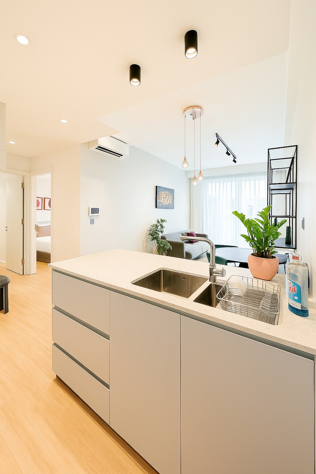 Located in a prime area on the 5th floor, our spacious 42 sqm apartment offers a comfortable, convenient, and secure living space. Enjoy panoramic views of the vibrant city, where you can embrace its energy while preserving privacy and tranquility. Elegantly designed and fully furnished with high-quality furniture, the apartment meets all your needs. Every detail reflects sophistication and modernity, creating a space that is both luxurious and welcoming, making you feel right at home.