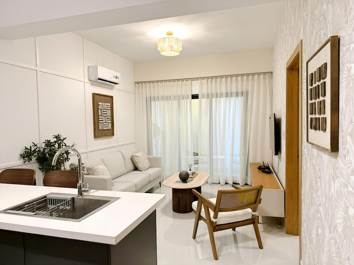 Privilegiada, muy codiciada zona del malecón. Impresionante vista al Mar Caribe desde todos los angulos. 62 m² bien iluminado, seguro, intimo, elegante, decoración simple y moderna. Todo lo necesario para una estadía cómoda, de larga o corta duracion Internet full, cómodo colchón, cocina equipada, área de trabajo, estacionamiento privado y seguro Servicio de lavandería y delivery, fácil acceso a transporte público y privado Cerca: Aeropuerto y Boca chica, la playa más famosa de la capital