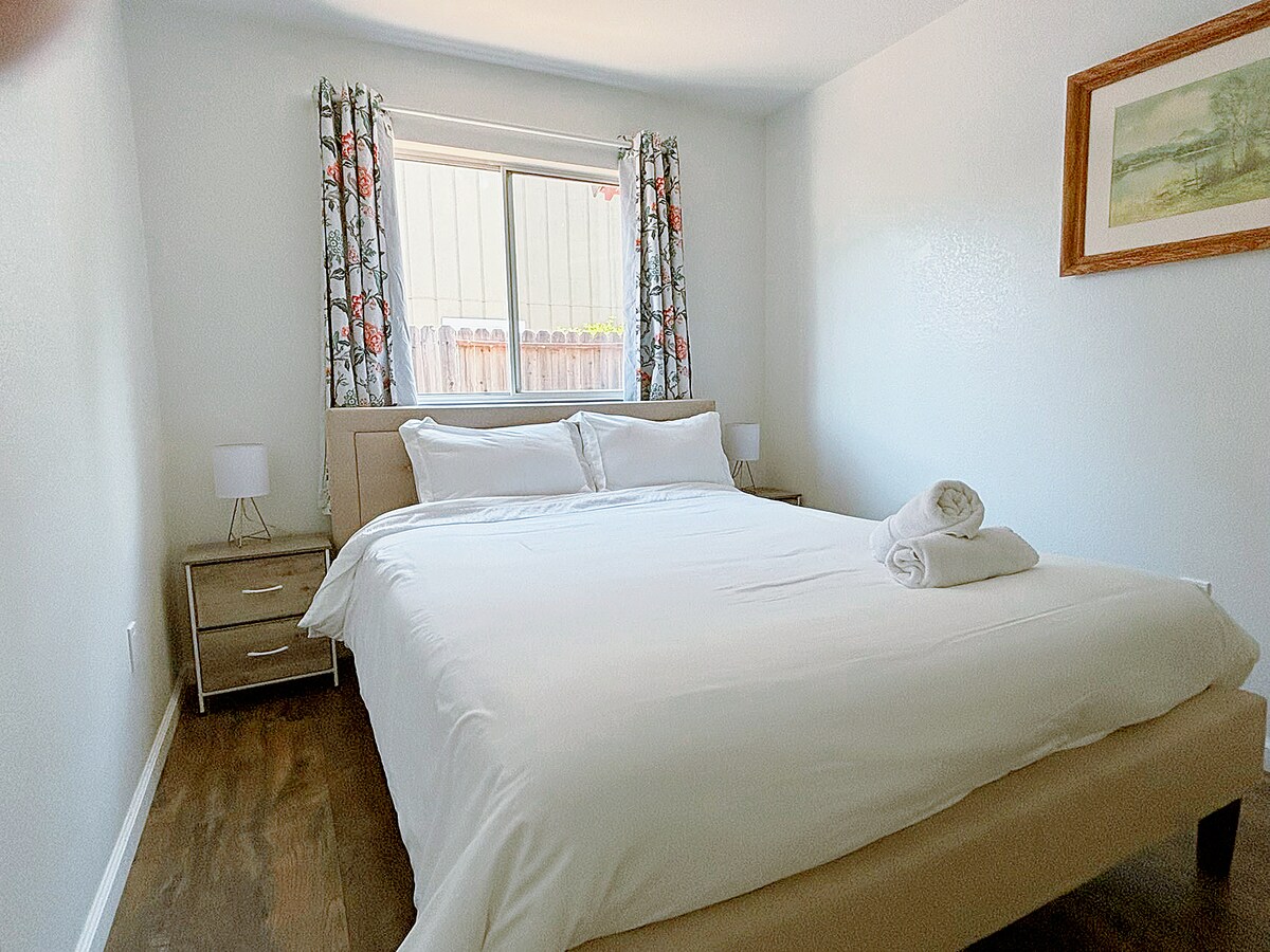 Komm, bleib und entspanne dich mit deinen Lieben in diesem modernen Bauernhaus im Herzen des kalifornischen Weinlandes. Wir sind nur wenige Minuten von Napa und nur eine kurze Fahrt von San Francisco und Sacramento entfernt. Wir haben ein Heimkino mit 65-Zoll-QLED-TV und Surround-Sound-System, elektrisch verstellbare Sitze für besten Komfort beim Genießen von Filmen, eine voll ausgestattete Küche, einen gefüllten Kühlschrank mit sauberem Trinkwasser, einen Sitzbereich auf der Terrasse mit Feuerstelle unter Obstbäumen und Weinreben. Unsere Unterkunft ist kinder- und familienfreundlich.