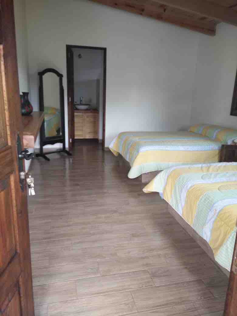 Es ist ein unglaubliches Landhaus in einem Avocado-Garten. Das Hotel liegt in San Juan Atezcapan in der Nähe von Valle de Bravo. Es ist ideal für Rückzüge und Ausflüge aus der Stadt, für Ruhetage und zum Abschalten. Es ist in zwei Blöcke aufgeteilt. In einem Teil befinden sich die öffentlichen Bereiche, ein Wohnzimmer, ein Esszimmer, eine Küche mit einem Badezimmer und ein Frühstücksraum im Freien. Unmittelbar daneben befinden sich die Ruhebereiche. Ein Hauptschlafzimmer mit Kingsize-Bett, Kleiderschrank, Terrasse und eigenem Bad.