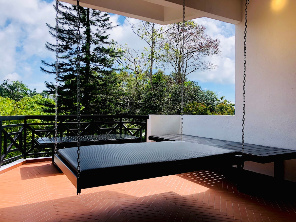 Die Tristania Villa verbindet sich nahtlos mit ihrem zerklüfteten Gelände und bietet eine malerische Aussicht, die sich über die westlichen Hügel von Selangor bis zur Straße von Malakka erstreckt. Tristania verfügt über 3 klimatisierte Schlafzimmer mit eigenem Bad, einer großen, offenen Lounge und einer voll ausgestatteten Küche. Es verfügt über einen privaten Pool für Gäste, die sich im kühlen Wasser im Schatten eines majestätischen Pulai-Baums entspannen. Es gibt auch einen Dachgarten für Grillsammeln, Camping oder Beobachten der Sonnenuntergänge oder nächtliche Sternenbeobachtung.