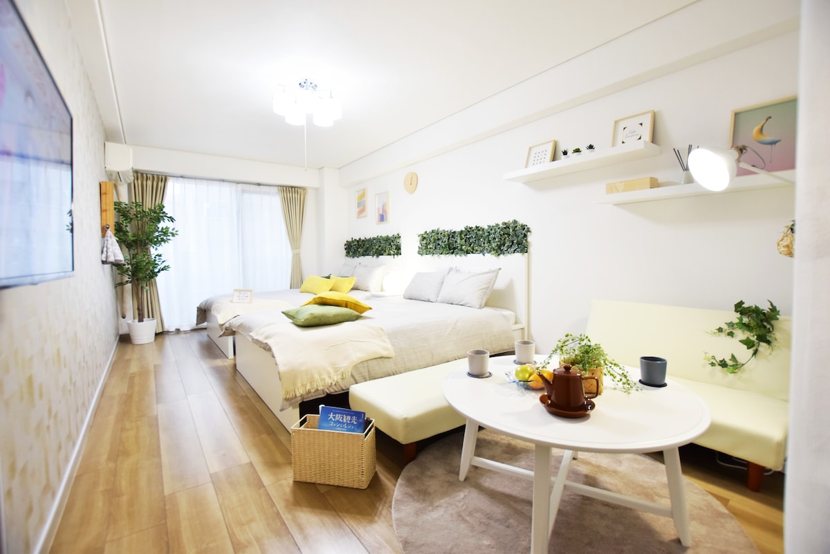 Große Innenfläche von 75 Quadratmetern! Kurokaido-Markt. Dotonbori.Shinsaibashi. Namba. Alles zu Fuß erreichbar! Guter Zugang zum Flughafen Kansai!