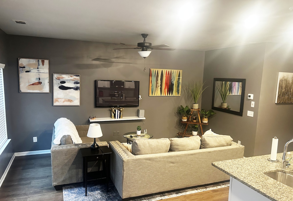 Modernes, möbliertes Haus mit 3 Schlafzimmern/2,5 Bädern und 2.350 Quadratfuß Platz. Ideal für reisende Krankenschwestern und Fachleute, nur 20 Minuten von Atlanta entfernt. Genieße 3 große 70-Zoll-Fernseher, Highspeed-WLAN, einen speziellen Arbeitsplatz, eine voll ausgestattete Küche, eine Waschküche in der Unterkunft und eine private Terrasse. Das Haus verfügt über eine Garage und befindet sich in einer ruhigen, sicheren Gegend, die sich perfekt zum Entspannen nach langen Schichten eignet. In der Nähe von Top-Krankenhäusern, Einkaufsmöglichkeiten und Restaurants. Aufenthalte von mehr als 30 Tagen willkommen.