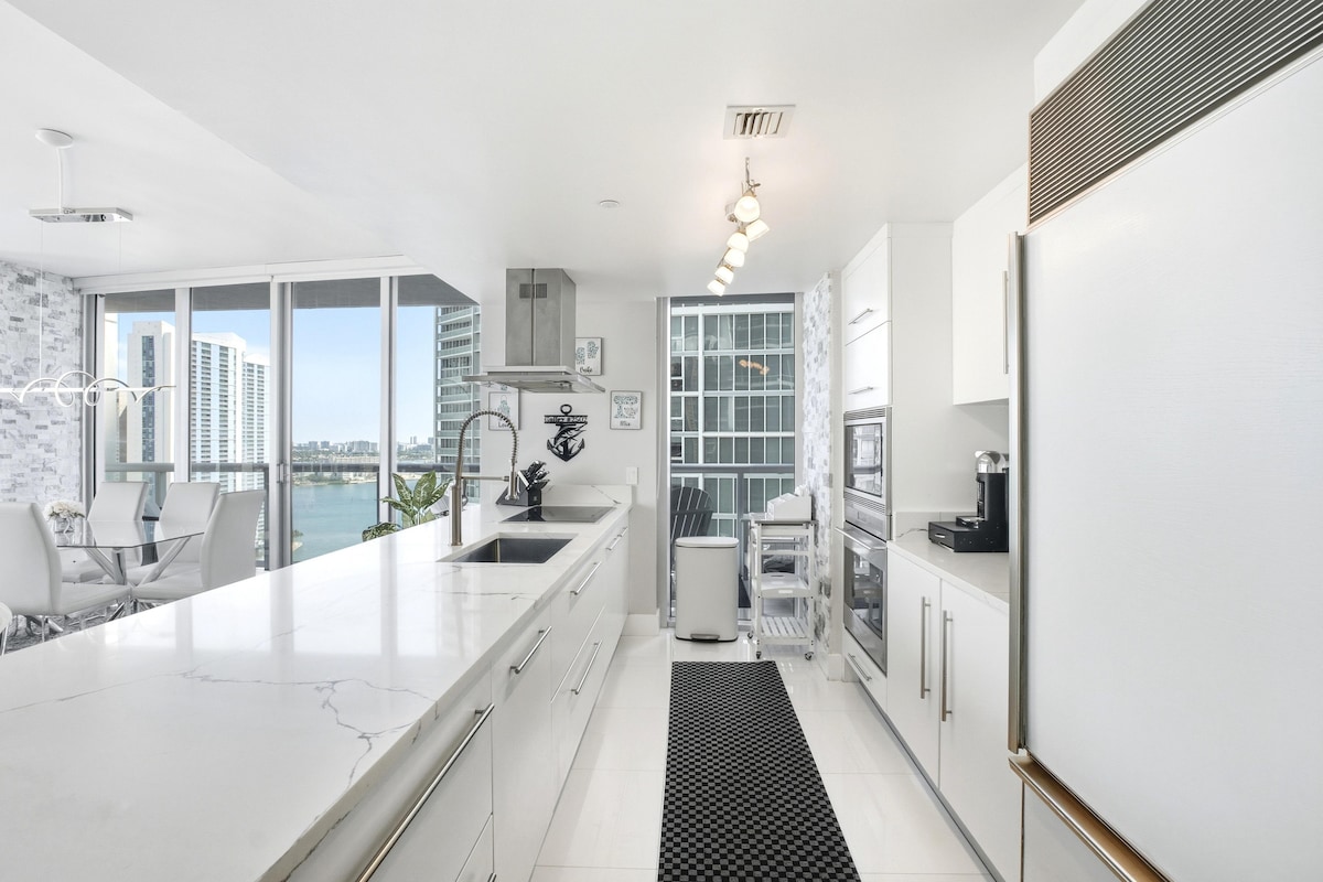 Modernes Designer-Penthouse auf der obersten Etage, zwei Schlafzimmer, zwei Badezimmer, mitten im Herzen von Miami. Genieße Stil, Komfort und atemberaubende Ausblicke auf Miami von deinem privaten Balkon aus und genieße den Panoramablick auf das Meer, die Jachten und die Stadt. Die Küche verfügt über neue Edelstahlgeräte. Das Wohnzimmer verfügt über einen brandneuen 4K Smart TV mit Essbereich. Das Hauptschlafzimmer verfügt über ein ultra bequemes Kingsize-Bett + ein eigenes, stilvolles Queensize-Zimmer, beide mit Smart-TVs. Brandneue Badezimmer, Waschmaschine & Trockner im Penthouse