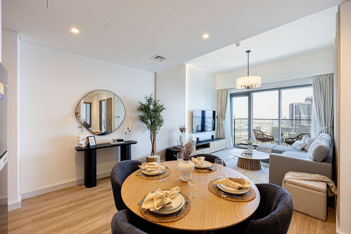 Your family will be close to everything when you stay at this centrally-located place. Indulge in luxury at our 2BHK in the most beautiful place in Dubai ,boasting panoramic views Cityscape &creek sea view.Take advantage of the top-notch building amenities, including an infinity pool, gym, kids play area , kids pool , multi purpose hall . ☑️10 minutes to Burj Khalifa & Dubai Mall and SHZ ☑️14 minutes to Dubai airports ☑️10 minutes to Wildlife Sanctuary ☑️18 minutes to Palm Jumairah