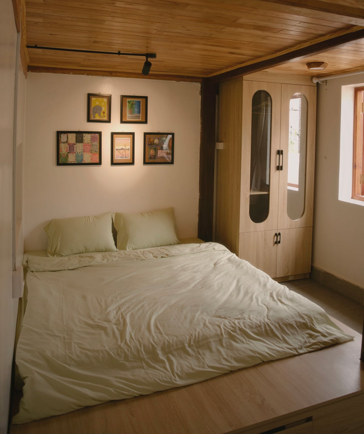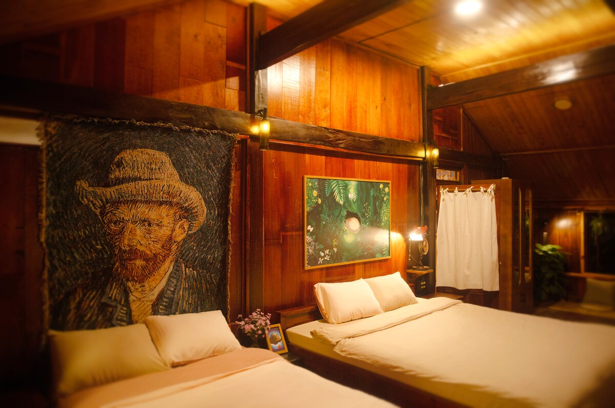 Wir sind ein kleines Haus in der ruhigen Landschaft von Mon Duong, Lam Dong. Das Haus liegt am Hügel, neben der Samten Hill Pagode, mitten in der grünen und ruhigen Natur. Es gibt hier einen Hof, um Himmel und Erde zu atmen, es gibt ein Bücherregal und farbiges Papier, damit du zeichnen kannst, wenn du möchtest. Das Wohnzimmer ist groß mit vielen kleinen Ecken – man kann arbeiten, lesen, entspannen. Wir haben auch einfache Landgerichte, aus Gemüse, das im Garten gepflückt und von Oma gekocht wird. Wenn du möchtest, kannst du dich hinsetzen, um Reis mit der Familie zu essen – wie ein vertrautes Mitglied des Hauses.