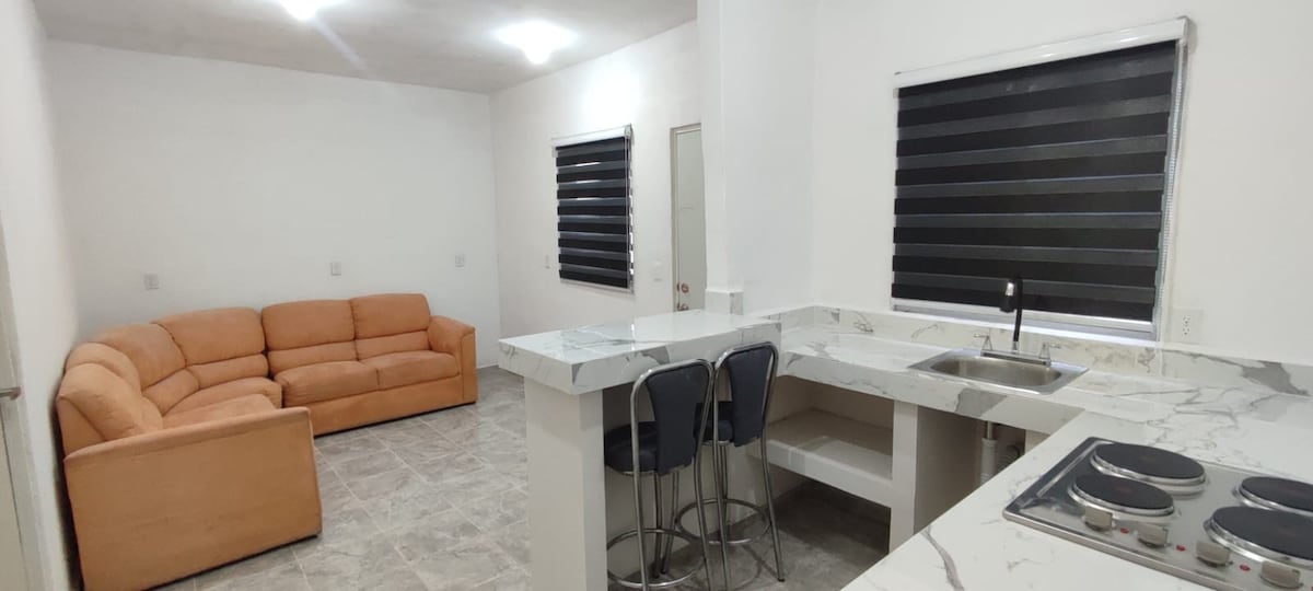 Este departamento de una recámara ofrece una estancia cómoda y práctica. Tiene estacionamiento, aire acondicionado, sala con TV e internet rápido, además de una cocina equipada con parrilla. La recámara es acogedora y el espacio brinda privacidad, limpieza y tranquilidad. Ideal para viajeros o estancias de trabajo por su comodidad y buena ubicación.