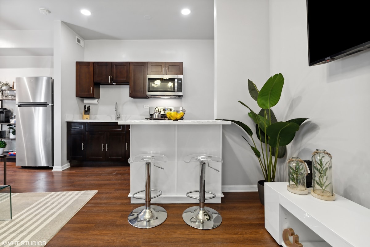 Willkommen in deinem perfekten zweiten Zuhause in Bridgeport, Chicago 🏡 Diese neu renovierte gemütliche Wohnung mit 1 Schlafzimmer und 1 Badezimmer bietet einen komfortablen, einladenden Raum, nur 10 Minuten von der Innenstadt von Chicago entfernt. Nur wenige Minuten von Chinatown entfernt Egal, ob du hier bist, um ein White Sox-Spiel zu sehen oder in die lebendige lokale Food-Szene und Kultur einzutauchen, dieser Ort ist ideal, um das Beste von Chicago zu erkunden. KOSTENLOSER PARKPLATZ 🅿️ KEINE PARTYS.