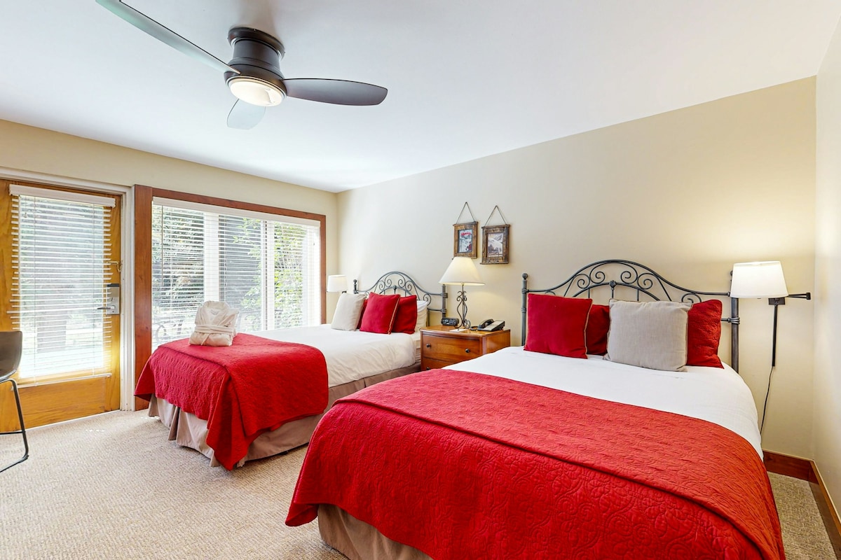 Arbeit und Spiel, oder einfach nur Spiel! Der perfekte Kurzurlaub für alle, die Ski fahren, Wanderwege erkunden, Weltklasse-Golf spielen, Mountainbike fahren oder einfach nur die Bergkultur genießen möchten. Dieser familien- und abenteuerfreundliche Ort ist perfekt, um alle deine Bedürfnisse zu erfüllen. Ein kurzer Spaziergang zur Gondel und Sekunden von Restaurants, Paddleboarding, Brauereien, Spielplätzen und mehr entfernt. Unsere geräumige Eigentumswohnung verfügt über spezielle Arbeitsbereiche, Baby-/Kinderausstattung, PELOTON-Fahrrad, Zugang zum Pool, Whirlpool, zu Tennisplätzen, zur Sauna und zum See.