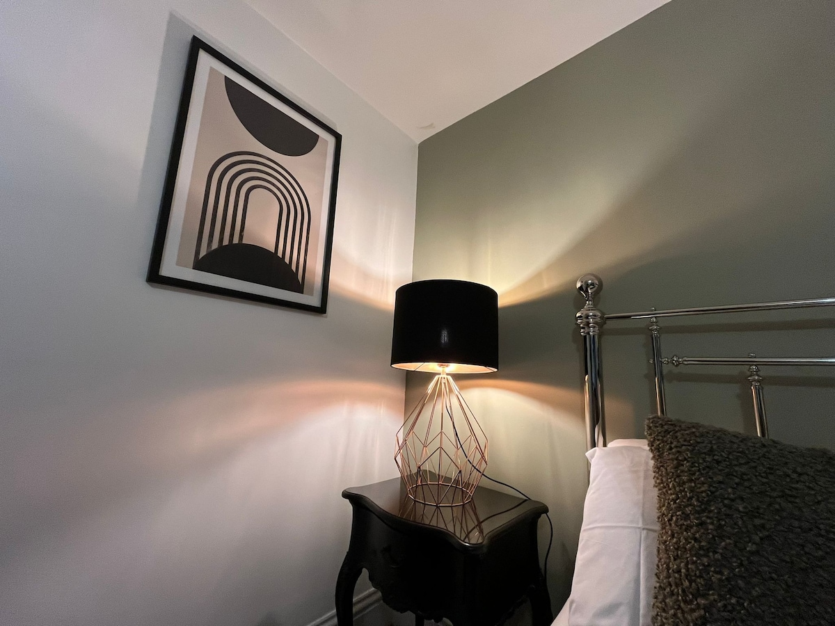 Diese atemberaubende Suite befindet sich im ältesten Teil dieses 600 Jahre alten Gebäudes, mit Eichenbalken, luxuriösem Bett und Holzofen. Ideal, um Gedanken und Ideen für den nächsten Bestseller zu sammeln. Das eigene Badezimmer verfügt über eine luxuriöse Kupferbadewanne mit Oast & Rye Pflegeprodukten, um deine Sorgen zu beseitigen. Im Zimmer: Kingsize-Bett/eigenes Badezimmer; Bademäntel und Hausschuhe | Kaffeemaschine und Tee | Smart-TV und WLAN/ Oast & Rye Toilettenartikel/ Haartrockner und Haarglätter