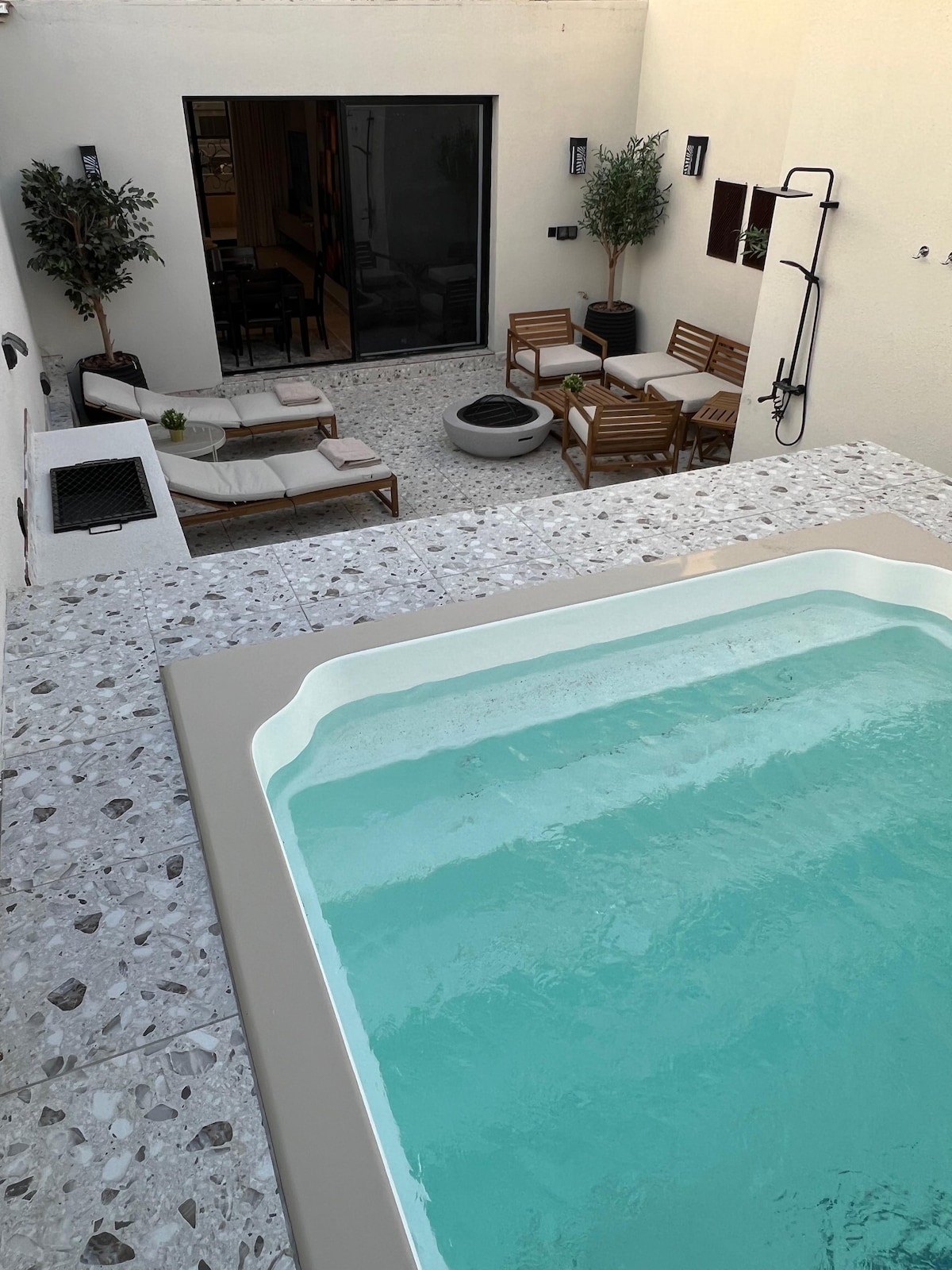 Erlebe ein einzigartiges Erlebnis in einem privaten Künstlerstudio, das Entspannung und Komfort bietet. Das Studio verfügt über ein Bett und einen seitlichen Sitzbereich, in dem du es dir auf einem gemütlichen Sofa bequem machen kannst. 65-Zoll-Smart-Bildschirm. Es gibt auch eine separate Küchenzeile und einen Kaffee, um alle deine Bedürfnisse zu erfüllen, und einen stilvollen Außenbereich mit Feuerstelle. Die Lage ist in der Nähe aller Dienstleistungen, des Touristenziels und der Riyadh Season-Gebiete (Boulevard, Arena, usw.) innerhalb von 5 Minuten. Wir würden uns freuen, dich als Gast aufzunehmen und die Erfahrung mit uns zu teilen!