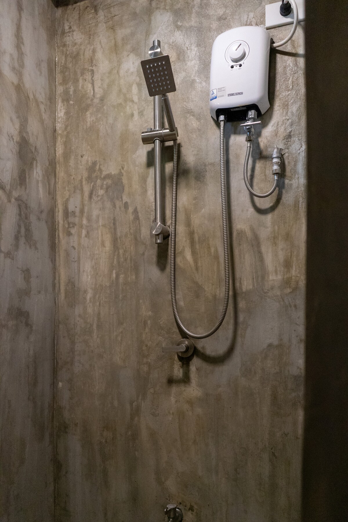 Jede Einheit hat ein industrielles und modernes Ambiente und fühlt sich dennoch wie ein zweites Zuhause an. Dieses Zimmer verfügt über ein Queensize-Bett, ein Einzelausziehbett und ein Stockbett mit einem Netflix-fähigen Flachbildfernseher, WLAN, Klimaanlage und vielen Steckdosen für deine Ladebedürfnisse. Toilette und Bad haben Warm- und Kaltwasserduschen und Stimmungsbeleuchtung. Günstig und sicher gelegen, nur einen Steinwurf vom Stadtbucht von Borongan entfernt und innerhalb der eigentlichen Stadt.