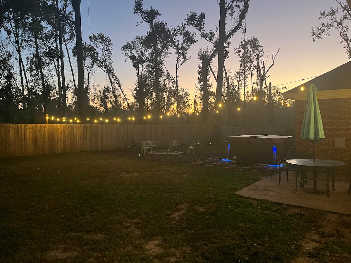 🌲 Discover The Pine Cone — a spacious five-bedroom retreat in Evans, GA, near Augusta National, Fort Eisenhower, and local hospitals. Perfect for Masters Tournament guests, corporate housing, and insurance relocations, this property combines style, comfort, and convenience. Enjoy an open-concept layout, a full kitchen, a game room, a fire pit, and a private hot tub surrounded by pine trees. Minutes to shopping, dining, and entertainment, yet peaceful enough to feel worlds away.