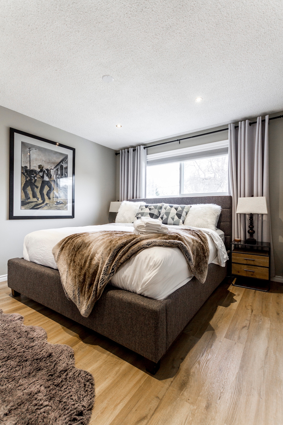 Das Cozy Fern ist ein ruhiges und komfortables Haus mit 2 Schlafzimmern in der Nähe der Innenstadt Neu für 2023: Klimaanlage! Das Haus verfügt über viel natürliches Licht, einen Kamin, geräumige Schlafzimmer und eine voll ausgestattete Küche. Beide Schlafzimmer verfügen über ein komfortables Queensize-Bett, ein eigenes Bad, Verdunkelungsrollos, einen begehbaren Kleiderschrank und einen Fernseher. KOSTENLOSE Parkplätze an der Straße. Tolle Lage! In der Nähe der Innenstadt, des Rogers Centers, des Commonwealth Stadiums, des Royal Alexandra Hospital und des NAIT Kein übermäßiger Lärm, da es Mieter in der Kellereinheit gibt