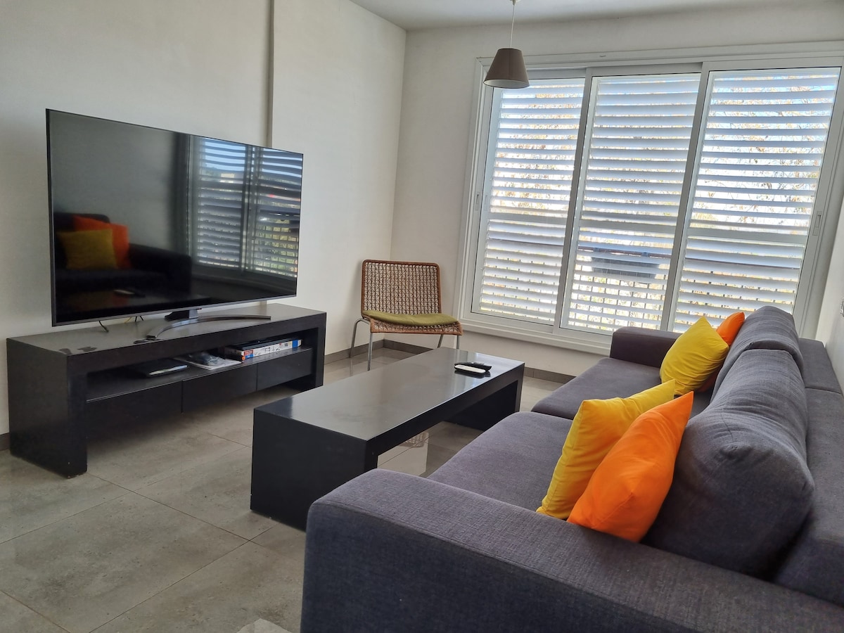 New and cosy 3 rooms upper unit. The unit contains a living room with a sofa, t.v and dining table. The kitchen is fully equipped. The main bedrooms has a dabble bad and closets. The second bedroom contains a single bad which opens. The working area is located in the second bedroom. The unit has two beautiful balconies. All rooms are air conditioned. The unit is beautifully designed and perfect for a vacation, business trip etc.