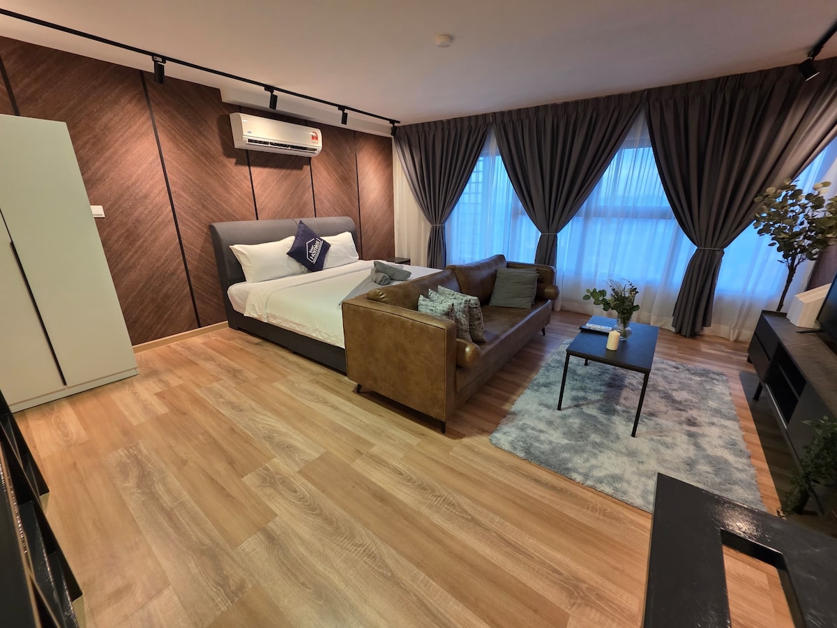 Unser Grand Loft ist mit allen möglichen Annehmlichkeiten und Einrichtungen ausgestattet, die du jemals brauchen wirst! Wir sind mit hochwertigen Möbeln, Unterhaltungseinheit (Karaoke) und exquisiter Verarbeitung ausgestattet, die nicht nur mehr Wert, sondern auch deine Erfahrung hier zu wohnen, gibt. Wir befinden uns nur 15 Minuten vom CBD, 5 Haltestellen vom Bukit Bintang (Pavillon) und 6 Haltestellen vom KLCC mit dem Zug entfernt. Wir sind strategisch günstig gelegen, mit einem 4-minütigen überdachten Spaziergang durch das Einkaufszentrum zur MRT-Station auf Ebene 1.
