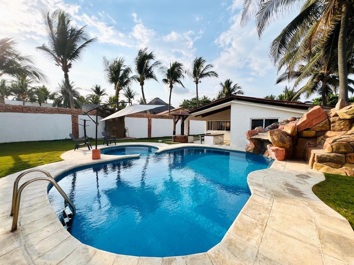 Strandhaus 100 Meter vom Meer entfernt, mit großem Süßwasserpool (11 Meter lang). **CHECK-IN 10:00 Uhr - CHECK-OUT 15:00 Uhr** Schlafzimmer mit Klimaanlage, ausgestatteter Küche und eigenem Parkplatz. Das Haus ist zirkuliert und wird komplett mit sauberen Laken und Kissen geliefert. Es gibt keinen gemeinsamen Raum mit anderen Personen. Niedrige Fahrzeuge können problemlos einfahren. Das Hotel liegt bei Km 5 der Straße nach Monterrico, über die Brücke von Iztapa nach Monterrico.