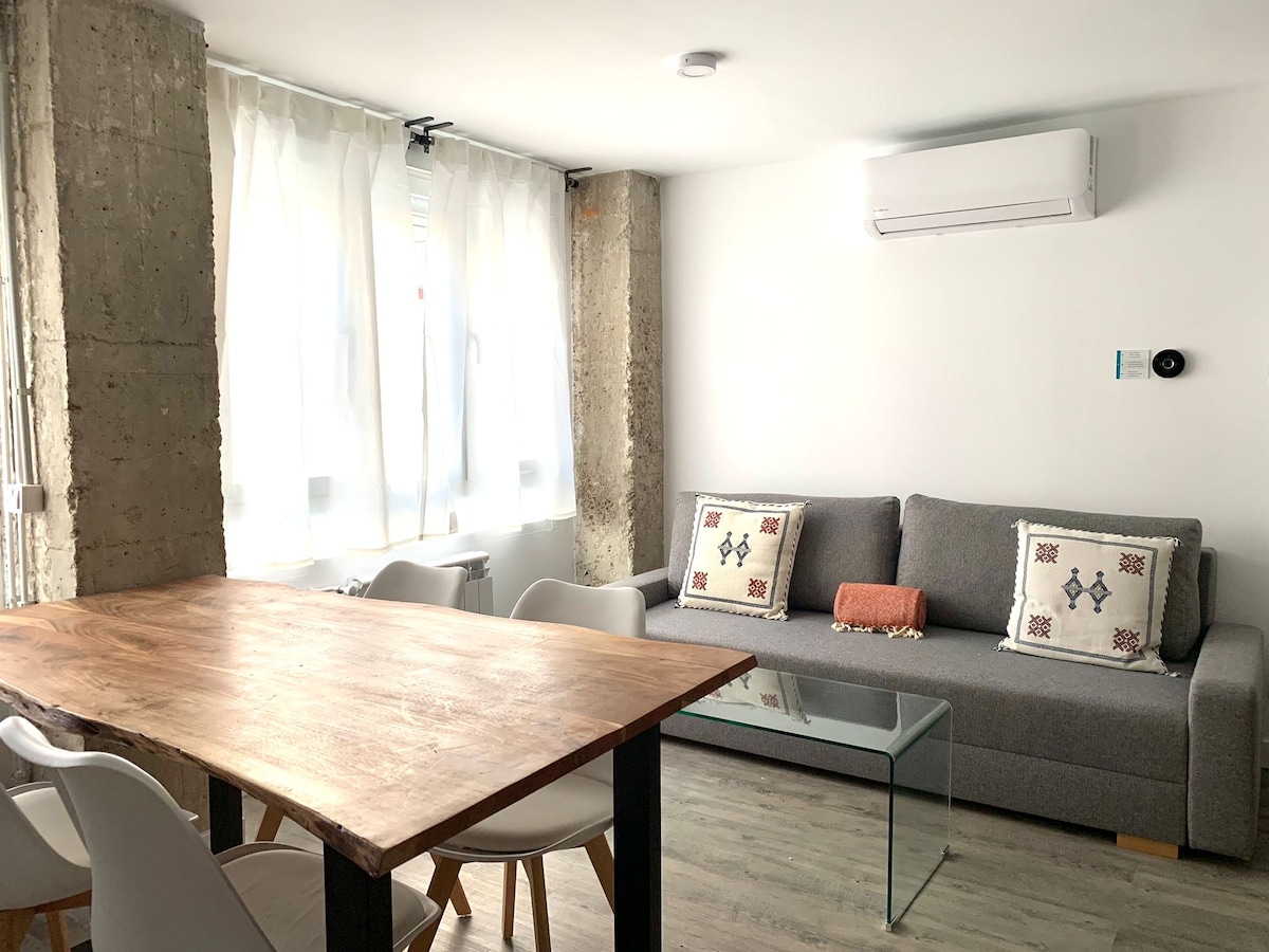 Dieses einzigartige Zuhause hat seine eigene Persönlichkeit. Eine sehr sorgfältige Inneneinrichtung, damit du dich wie zu Hause fühlst. Es ist direkt von der Straße aus zugänglich, was Ihnen mehr Unabhängigkeit und mehr Komfort bietet (es gibt keine Koffer für Treppen oder Aufzüge) Voll ausgestattete Küche, Badezimmer und ein offener und komfortabler Raum mit neuem Doppelbett, Sofa, Arbeitsbereich und Esstisch. WLAN. In einer der beliebtesten Viertel in Madrid gelegen, sehr gut angebunden, mit U-Bahn-Stationen 2 Minuten entfernt.