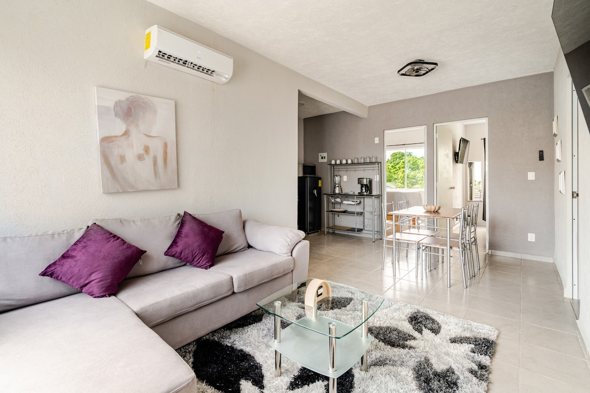 Ruhiger, 🍃🌴 privater Raum mit separatem Eingang. 5 Minuten vom Flughafen✈️, 10 Minuten von Marina Vallarta und Puerto Mágico📍 entfernt 🚢 Sie verfügt über Klimaanlage❄️, WLAN🛜, Netflix🍿, 🚿 Warmwasser, Wohnzimmer🛋️, Schlafzimmer 🛏️ und Badezimmer 🛁 Frühstücksbar mit Mikrowelle, Teller und Besteck 🍽️🍴