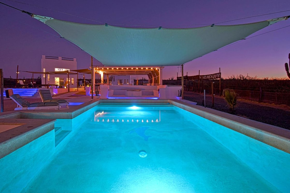Dein Öko-Chic-Paradies mit Blick auf den Golf von Kalifornien. Dieses nachhaltige Haus bietet zwei Schlafzimmer (Kingsize- und Queensize-Bett), Schlafsofas, Hängematten und einen privaten Pool. Es verfügt über eine voll ausgestattete Küche, einen Arbeitsbereich, schnelles WLAN und einen Fernseher. Genieße eine Terrasse mit Liegestühlen, eine Feuerstelle, einen Grill und ein Kajak. Direkter Strandzugang, kostenloser Parkplatz und 24/7 Sicherheit. Erlebe einzigartige Sonnenuntergänge und verantwortungsvollen Komfort: Buche jetzt deinen Ausflug an die Küste! Hochwertige Bettwäsche, flexibler Check-in und persönliche Betreuung.